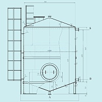 А-патрубок слива, Б-патрубок для установки уровнемера, В-патрубок для налива